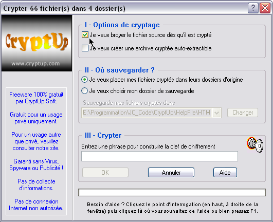 fichiers source, c'est-à-dire les fichiers non-cryptés, seront broyés (supprimés définitivement de votre disque)